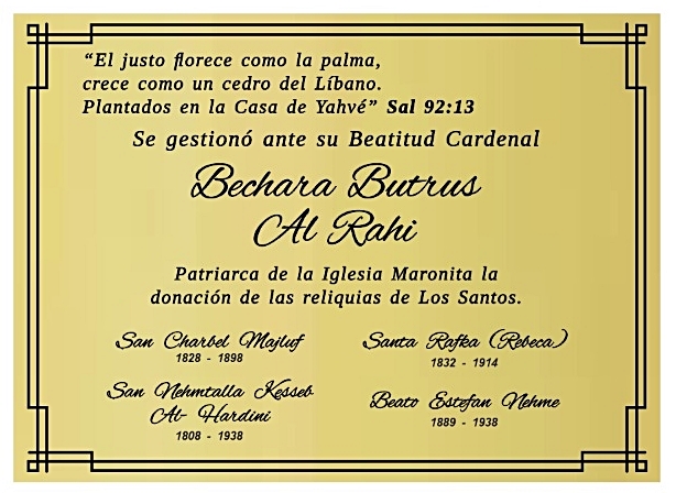ولقد جُلبت إلى الكنيسة ذخائر القديسين اللبنانيين بإذن من البطريرك الماروني مار بشارة بطرس الراعي وقام برسم صورهم فنان مكسيكي متخصص في رسم البورتريهات.