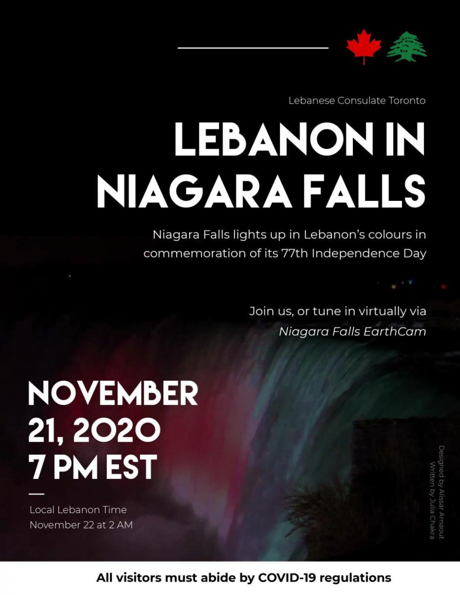 بمناسبة الذكرى الـ77 لإستقلال لبنان ستضاء شلالات نياغرا في كندا يوم غد السبت بألوان العلم اللبناني.