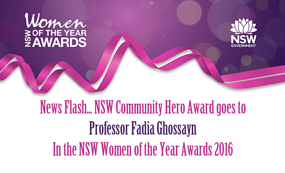 إنجاز اغترابي لبناني جديد سجل اليوم بالتزامن مع الاحتفال بيوم المرأة العالمي، حيث فازت البروفسورة فاديا غصين بلقب Community Hero في إطار جائزة "امرأة العام 2016 في ولاية نيو ساوث ويلز" بعدما كانت وصلت إلى نهائيات المنافسة إلى جانب ثلاث سيدات أخريات من الولاية.