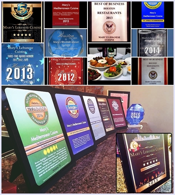 على أحد الرفوف، كما على جدران المطعم، تتناثر هنا وهناك صور مختلف الجوائز التي حصدتها عائلة فاخوري التي تدير شؤون المطعم، من المطبخ إلى الإدارة مروراً بالإشراف على خدمة الزبائن. وآخر الجوائز التي أحرزها المطعم كانت جائزة Best Mediterranean Restaurant in Houston ، وهو لقب يحصل عليه للعام السادس على التوالي. علماً أنه كان كان قد تسلم قبله جائزة Excellent in Customer Satisfaction للعام السابع على التوالي.