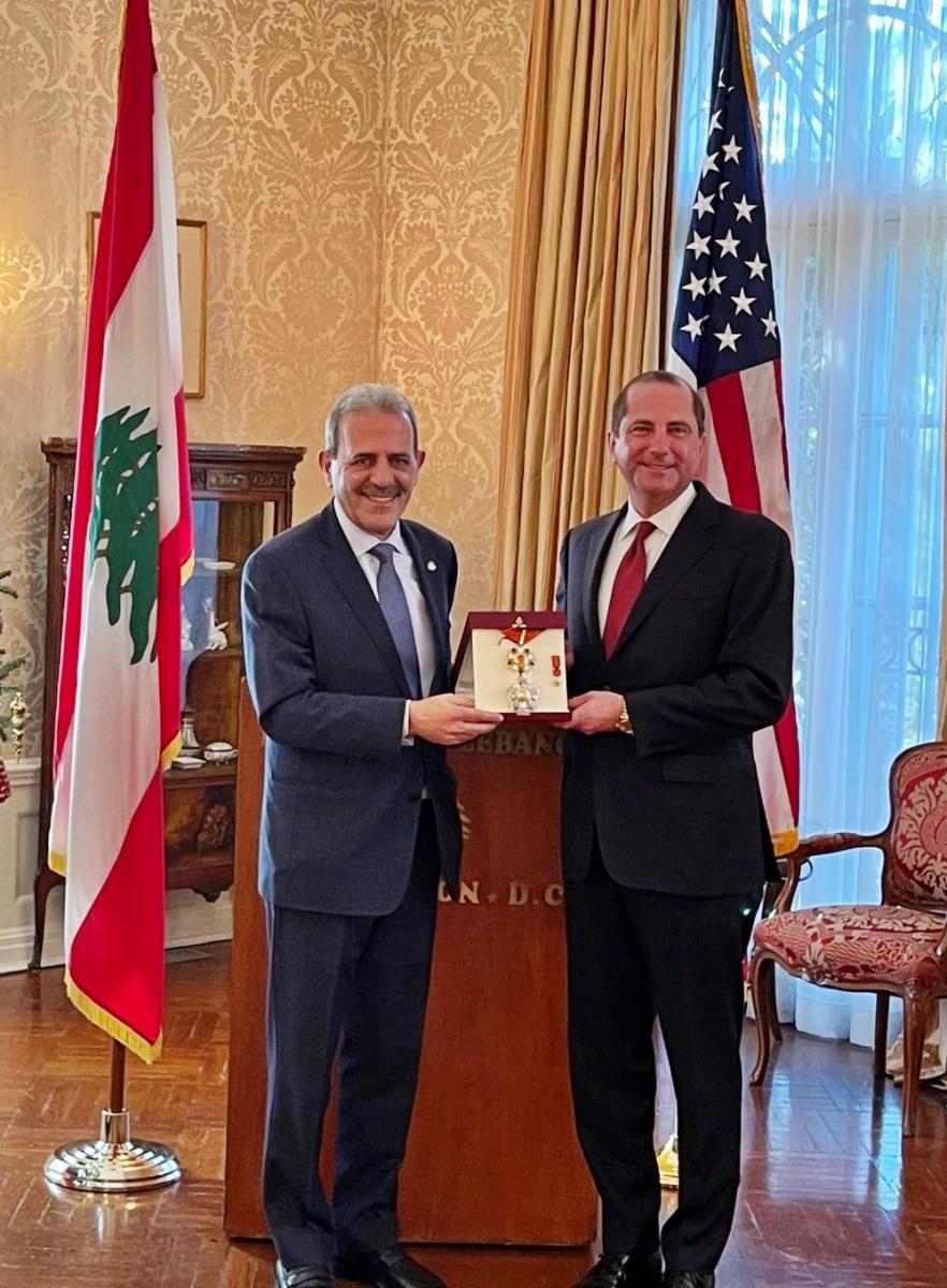 وسام الأرز من رتبة ضابط أكبر لوزير الصحة الأميركي اللبناني الأصل أليكس عازار