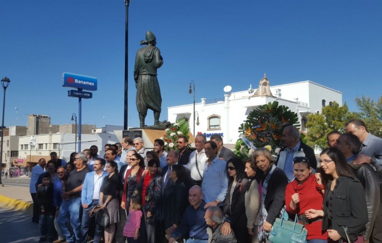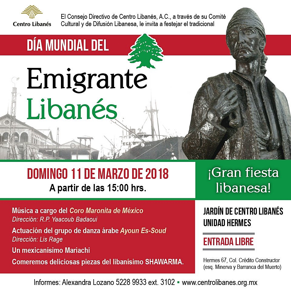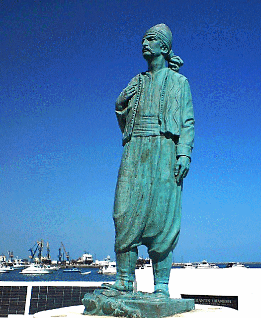 في آذار 2003، واحتفاءً بيوم المغترب اللبناني، رفع لبنانيو المكسيك "تمثالهم" أمام مرفأ بيروت بعد صعوبات كثيرة و تعقيدات قانونية، استوجبت تدخل السفارة المكسيكية مباشرة للحلحلة، واستتبعت ذلك الحكومة المكسيكية عام 2005 باستصدار طابع بريدي تكريماً للبنانيين لديها واحتفالاً بمرور 125 سنة على حضورهم في المكسيك.