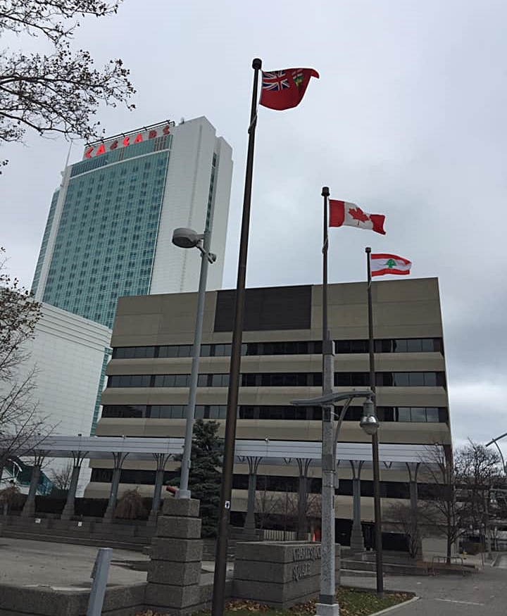 بجهود أبناء الجالية اللبنانية، جرى اليوم رفع العلم اللبناني في مدينة وندسور الكندية على سارية الشرف إلى جانب العلم الكندي في الباحة المحيطة بالمباني الحكومية للمدينة، لمناسبة عيد الإستقلال وتحية تضامن مع ثورة الشعب اللبناني، بحسب ناشطين لبنانيين في وندسور.