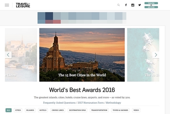 ختاماً للعام 2016، أعادت مجلة Travel & Leisure الأميركية المختصة بالسياحة والسفر نشر لائحة بأفضل 15 مدينة في العالم كانت قد نشرتها في تموز الماضي، وأتت فيها العاصمة اللبنانية بيروت في المرتبة 12 من أصل المدن الـ 15 التي اعتبرتها المجلة "الأفضل في العالم" للعام 2016.
