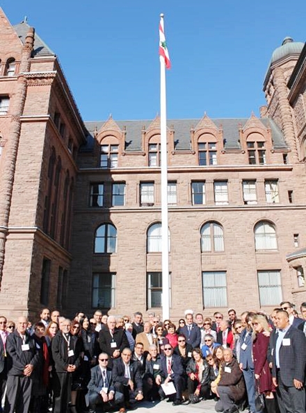 علم لبنان يرتفع على سارية برلمان أونتاريو ونواب الولاية يدعون لتكريس تشرين الثاني شهراً للتراث اللبناني
