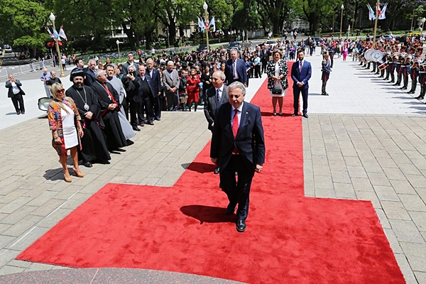 وقد كان في استقبال السفير ممثلون من الخارجية الأرجنتينية وثلّة من حرس الشرف وموسيقى الجيش التي عزفت النشيدين الأرجنتيني واللبناني. حضر هذا الحدث حشد من طلاب مدارس المؤسسات الاغترابية وممثلون عن مختلف المرجعيات الدينية الاسلامية والمسيحية اللبنانية.
