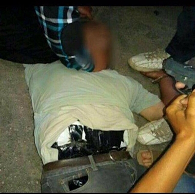 وهذه الصور التي نشرتها الوكالة الوطنية للإعلام تظهر الانتحاري على الأرض بعدما تمكنت العناصر الأمنية من القبض عليه.