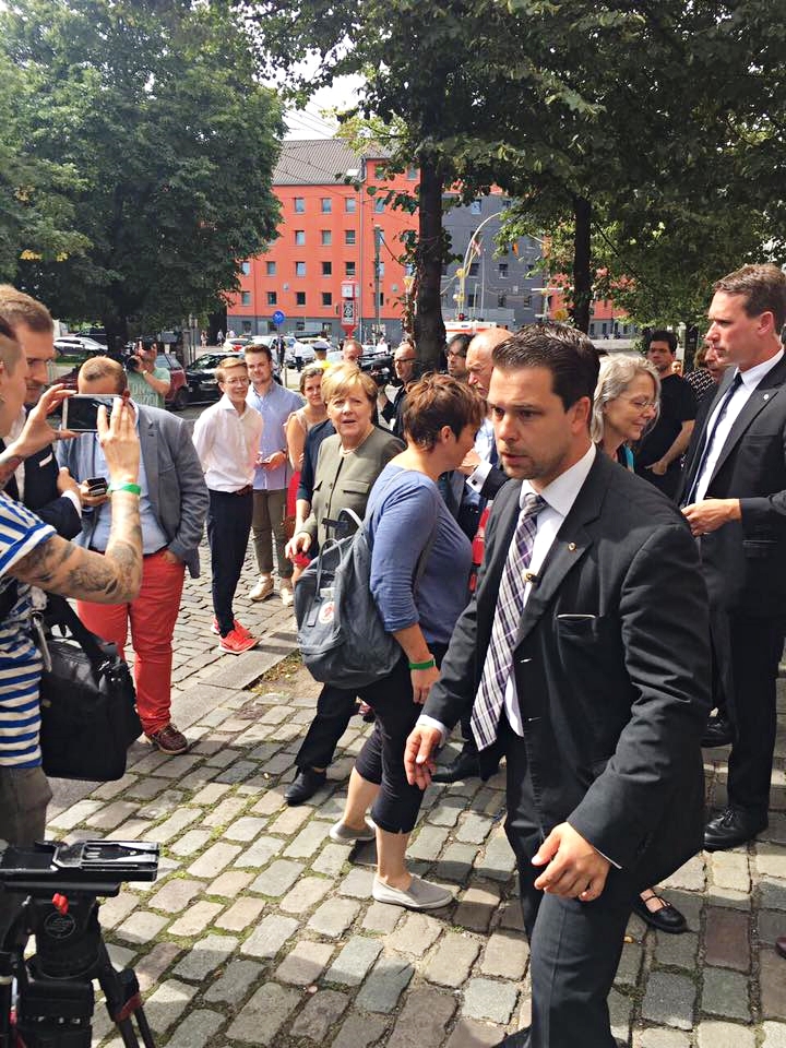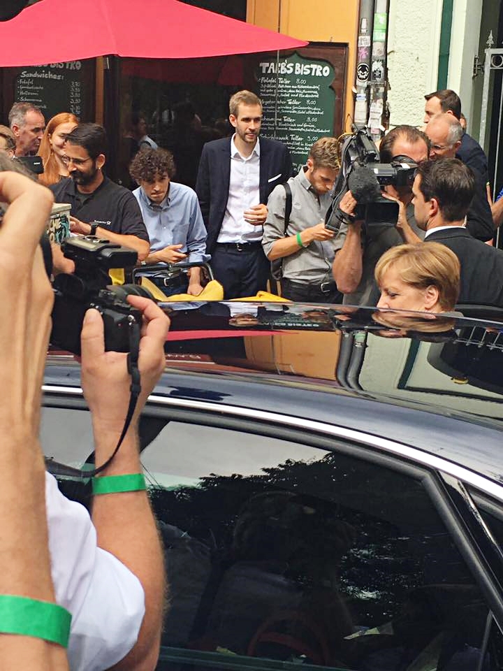نشر الإعلامي في تلفزيون المستقبل "منير الحافي" صوراً على صفحته على الفايسبوك تظهر وصول المستشارة الألمانية أنغيلا ميركل إلى مطعم Ta’eb Bistro (طيّب) الذي يملكه أخوه طالب الحافي ويقدم فيه المأكولات اللبنانية في العاصمة برلين وتمتعها بتذوق الفلافل.