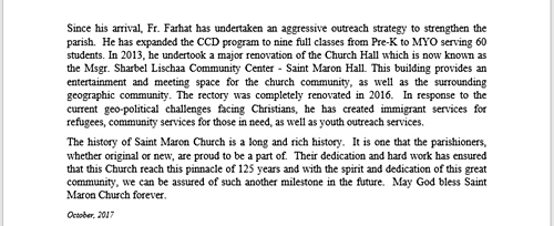 سلسلة نشاطات لكنيسة مار مارون في فيلادلفيا احتفالاً بالعيد الـ125 لتأسيسها