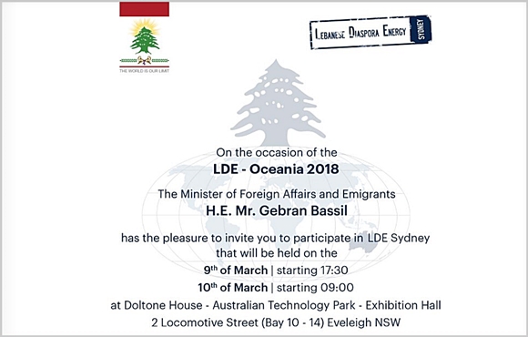 وسيعقد المؤتمر في Doltone House - Australian Technology Park في سيدني برعاية وزير الخارجية والمغتربين جبران باسيل وبمشاركة حشد من الشخصيات اللبنانية - الأسترالية.