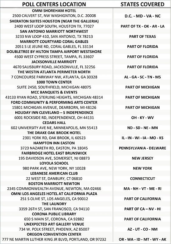 وهذه لائحة كاملة بمراكز التصويت ونطاق تغطيتها لمختلف الولايات كما وزعتها السفارة: