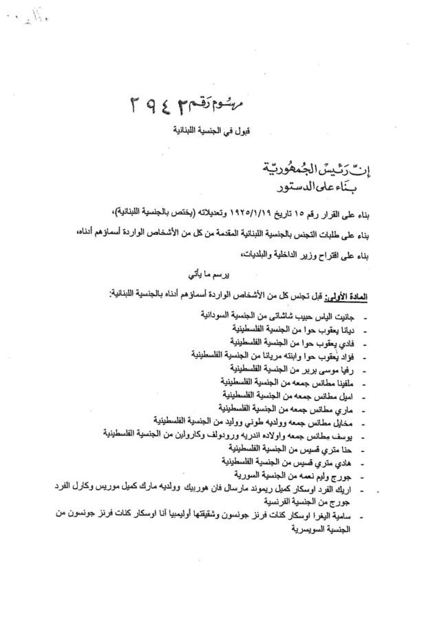 وأتى المرسوم رقم 2942 والصادر بتاريخ 11 أيار 2018 تحت عنوان "قبول في الجنسية اللبنانية".