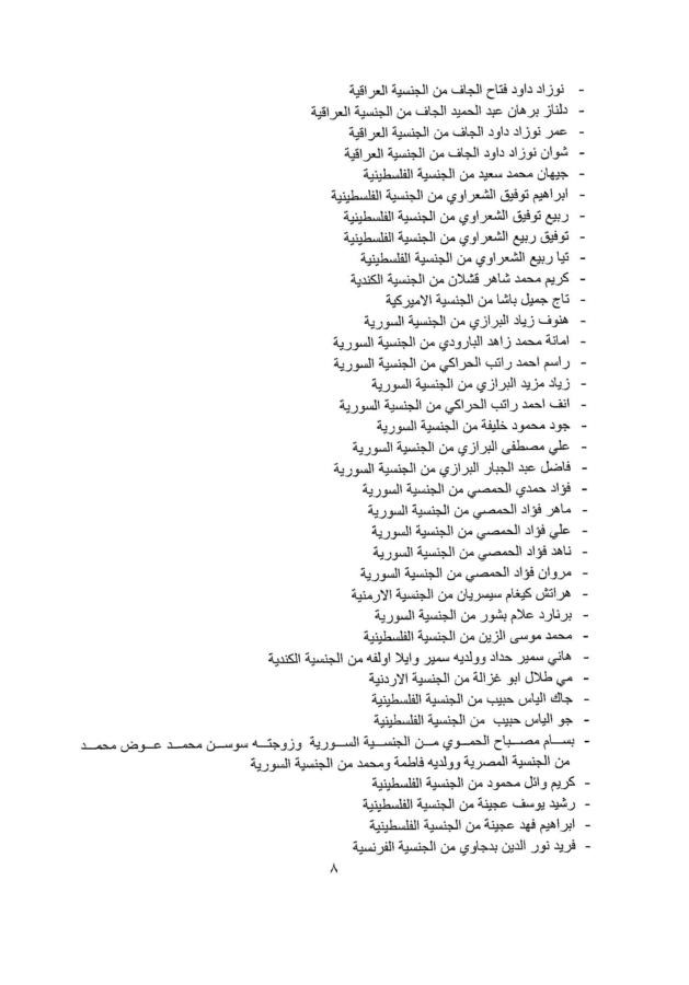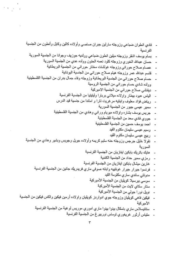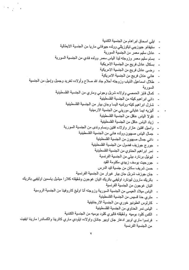 اللائحة الرسمية بأسماء المشمولين بمرسوم التجنيس كما نشرتها وزارة الداخلية