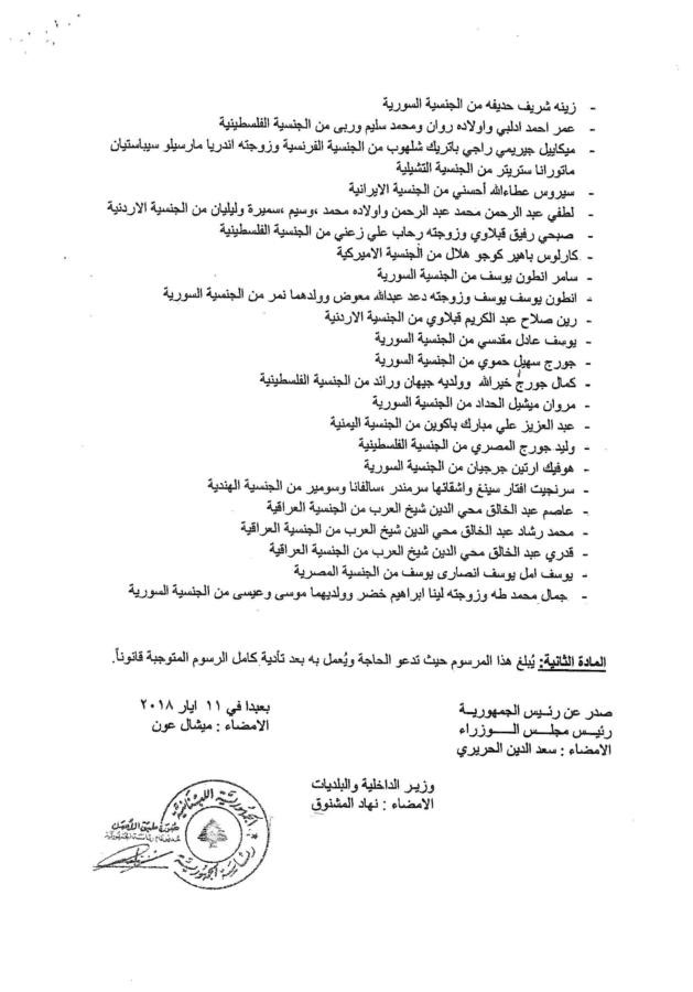 بعد طول انتظار، نشرت وزارة الداخلية والبلديات رسمياً الأسماء الواردة في مرسوم التجنيس.