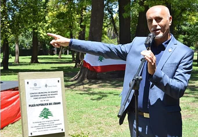 من جهته رئيس الجمعية اللبنانية في روساريو نستور الحاج قال في الافتتاح إن هذه الساحة ستكون "نقطة التقاء وأداة للتنمية الثقافية في المدينة وستكون أيضاً مساحة لتذكُر المهاجرين اللبنانيين الذين استقروا في روساريو وساهموا في إنشائها. كما أننا في هذا المكان نكرم النضال من أجل استقلال لبنان الذي كلف الكثير لكل اللبنانيين".