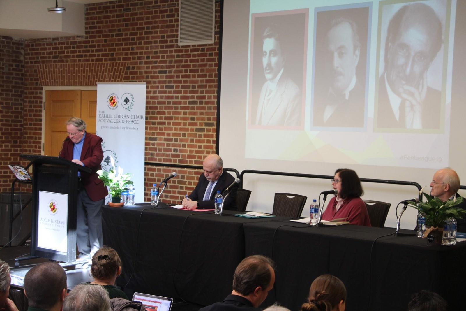 The opening session of the symposium included a keynote speech by Dr. Paul Salem, President of the Middle East Institute, and opening remarks by the President of the University of Maryland, Dr. Wallace Loh; Dean of the College of Behavioral and Social Sciences, Dr. Gregory Ball; and the Director of the Gibran Chair, Dr. May Rihani. Three panels followed the opening sessions and had illustrious professors from universities in the US, Great Britain, and Canada. These professors assessed, analyzed, and highlighted the innovative contributions of the three thinkers.