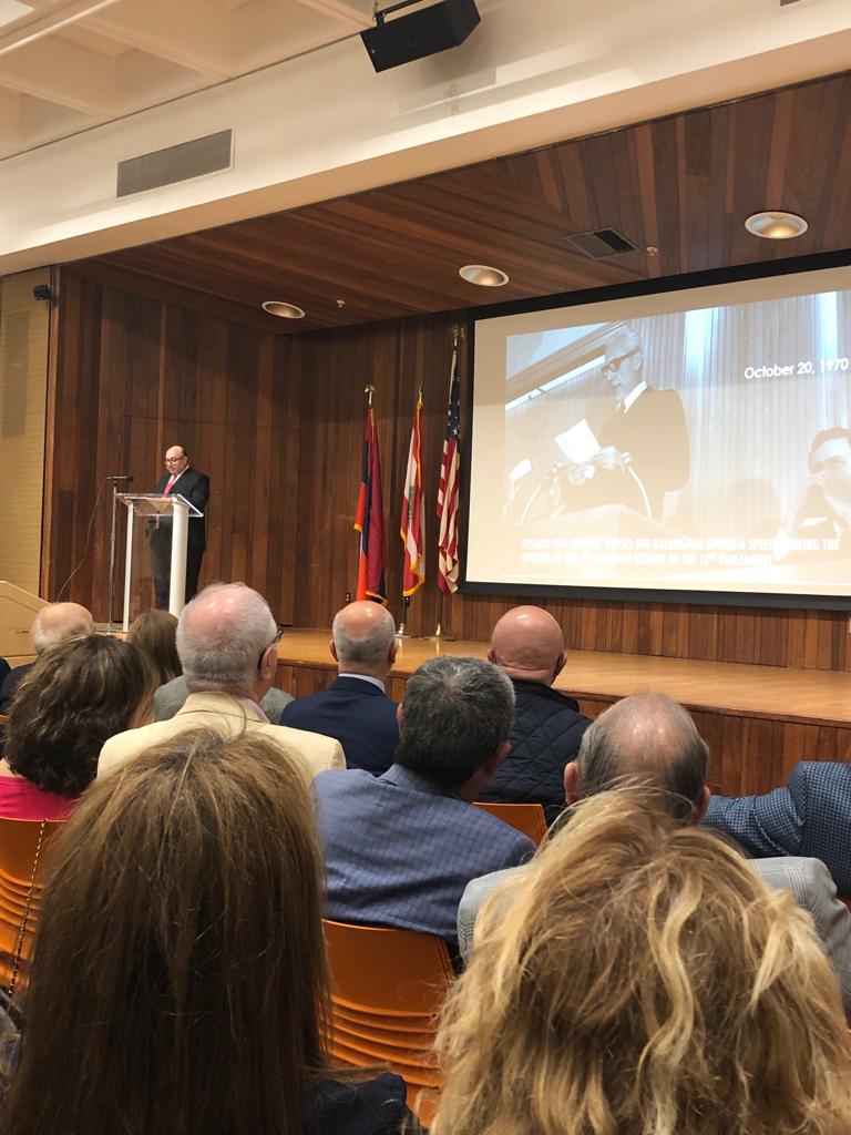 جرى اللقاء في قاعة مكتظة للمكتبة العامة في غلانديل، وهي إحدى ضواحي لوس أنجلوس، بمشاركة فعاليات رسمية و اجتماعية ارمنية و لبنانية وبحضور قنصل لبنان العام في لوس أنجلوس ميرنا الخولي.