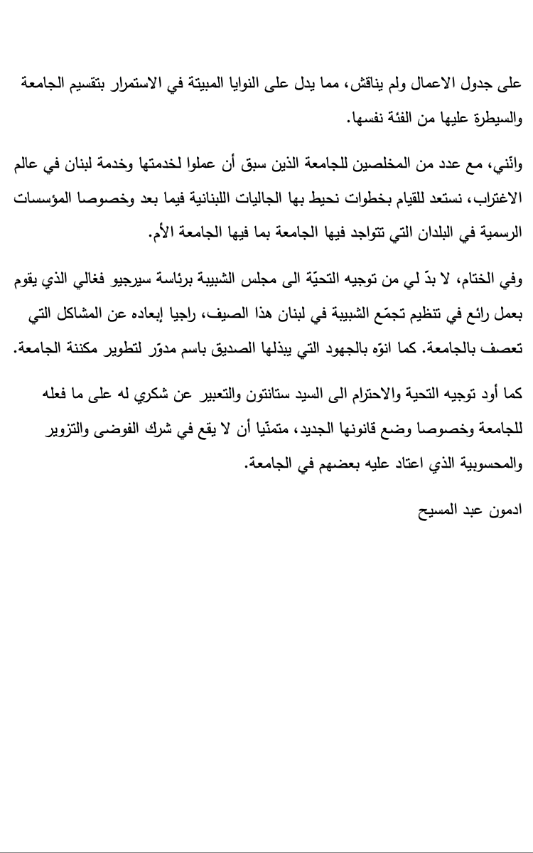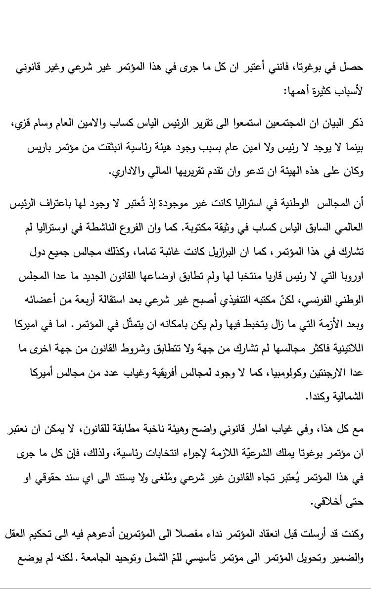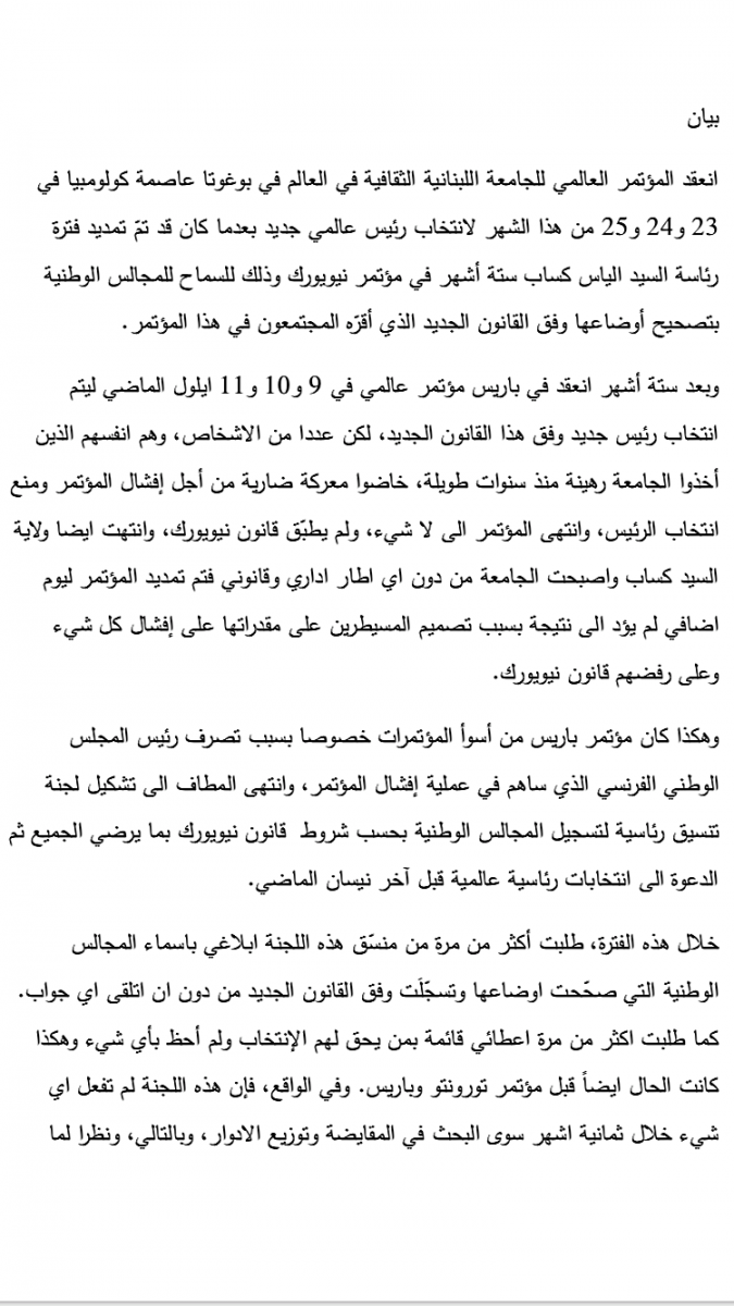 عبد المسيح عن مؤتمر الجامعة اللبنانية الثقافية في بوغوتا: غير شرعي وغير قانوني