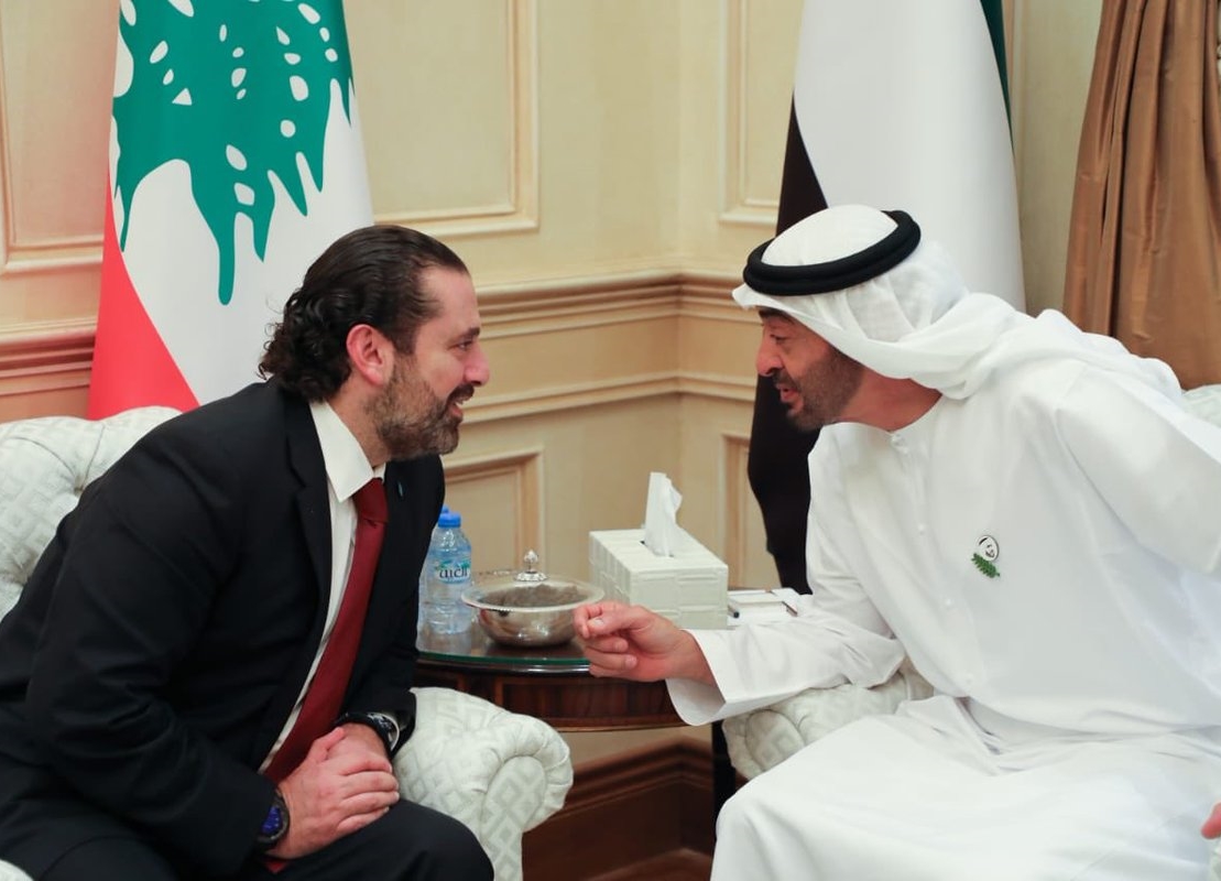 وأنهى الحريري زيارة لأبو ظبي شارك خلالها في أعمال المؤتمر الاستثماري الإماراتي - اللبناني والتقى عدداً من كبار مسؤولي الدولة وفي مقدمتهم ولي عهد أبو ظبي الشيخ محمد بن زايد آل نهيان الذي بحث معه "العلاقات الثنائية بين البلدين وسبل تنميتها على المستويات كافة خاصة الاقتصادية والاستثمارية والتنموية بما يدعم المصالح المشتركة للبلدين وشعبيهما الشقيقين"، بحسب البيان الرسمي الإماراتي عن الزيارة، الذي أضاف أن الجانبين تناولا "آخر مستجدات الأحداث في منطقة الشرق الأوسط والخليج العربي والمنطقة العربية وتداعياتها على الأمن الإقليمي والعالمي، فضلاً عن القضايا العربية والإقليمية والدولية ذات الاهتمام المشترك وتبادلا وجهات النظر بشأنها." وأكد ولي العهد خلال اللقاء أن دولة الإمارات "حريصة على دعم علاقاتها مع لبنان الشقيق على المستويات المختلفة، وتقف إلى جانبه في كل ما يحفظ أمنه واستقراره، ويحقق طموحات شعبه الشقيق إلى التنمية والتطور".