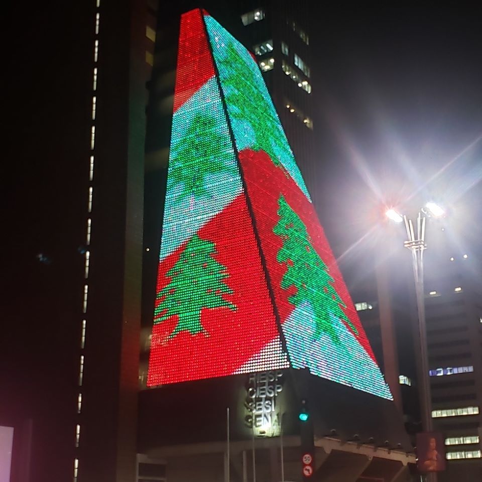 بمناسبة الاحتفال بالعيد الـ76 لاستقلال لبنان، أضيء اليوم أحد المباني في جادة باوليستا، وهي أهم جادة في مدينة ساو باولو بعلم لبنان وصور مجسمات لأهم معالمه التاريخية، وذلك بجهود قنصلية لبنان العامة في ساو باولو وبالتعاون مع السفارة في برازيليا.