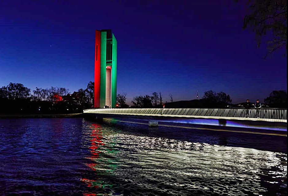 بمبادرة من سفارة لبنان في كانبيرا، أضيء برج Carillon الوطني في بحيرة "بيرلي غريفين" في العاصمة الأسترالية بألوان العلم اللبناني، تخليداً لذكرى ضحايا الانفجار المأساوي في مرفأ بيروت وتضامناً مع لبنان والشعب اللبناني.