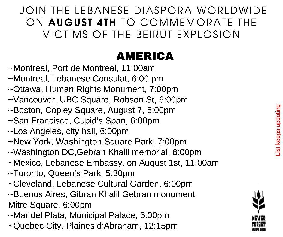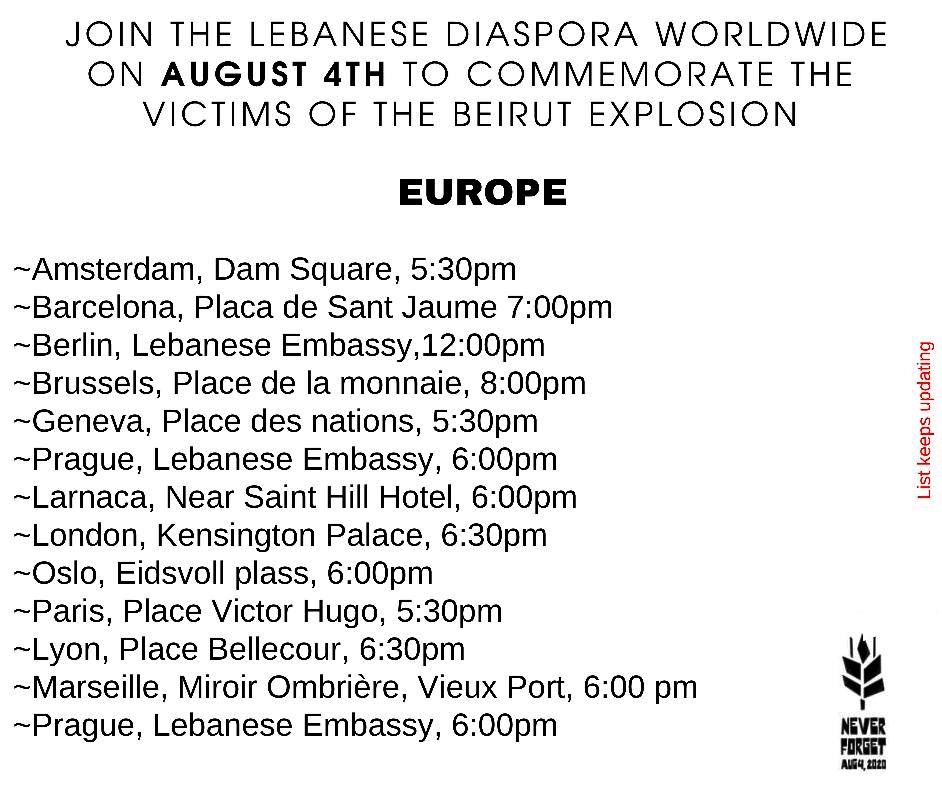 هذه أماكن التحركات والتجمعات في دول الانتشار الأربعاء إحياءً لذكرى 4 آب